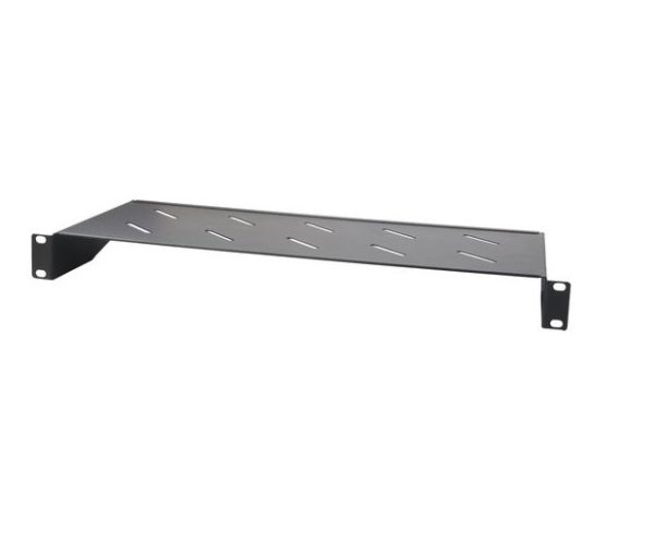 1RU rack cabinet mounting shelf. Mountable from the front. Cage nuts are included for installation.